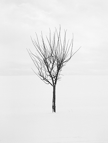 ... Das Arbeiten in seriellen Bilderfolgen prädestiniert den Künstler dazu, übergreifende Zusammenhänge zu veranschaulichen. Kurz und prägnant Trees – Bäume nennt der Fotograf seine 18-teilige Serie. Bekommt man nur einzelne Bilder dieser Folge zu Gesicht, wird der programmatische Gehalt nur schwerlich nachvollziehbar. Der gleiche Ausschnitt, die gleiche Komposition und Mittelstellung des Objektes und nahezu identische Lage des Horizontes, fordern unser Bildgedächtnis geradezu heraus, um die Verschiedenheit zu erkennen. In der geschlossenen Präsentation als Serie wird die ästhetische Dimension und künstlerische Strategie der Arbeiten allerdings augenfällig. Die Wiederholung des scheinbar Gleichen birgt bei eingehender Betrachtung eine Fülle markanter Unterschiede der Bäume in den Gestalt- und Entwicklungsformen – kräftig und ausladend oder schlank und aufstrebend, vielfältig verzweigt und offen oder dicht strukturiert und gedrängt, mit kugelförmiger oder pyramidaler Gestalt des Geästes, mit oder ohne Blätter am oberen Astwerk. Durch das kontrastlose Ineinanderübergehen der weißen Schneelandschaft mit dem bedeckten Himmel im Hintergrund wird die Illusion des dreidimensionalen Raumes zurückgenommen und er erscheint annähernd als monochrome Weißfläche, die einer weiteren Reduzierung im fotografischen Bild bereits Grenzen weist.