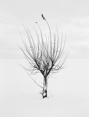 ... Das Arbeiten in seriellen Bilderfolgen prädestiniert den Künstler dazu, übergreifende Zusammenhänge zu veranschaulichen. Kurz und prägnant Trees – Bäume nennt der Fotograf seine 18-teilige Serie. Bekommt man nur einzelne Bilder dieser Folge zu Gesicht, wird der programmatische Gehalt nur schwerlich nachvollziehbar. Der gleiche Ausschnitt, die gleiche Komposition und Mittelstellung des Objektes und nahezu identische Lage des Horizontes, fordern unser Bildgedächtnis geradezu heraus, um die Verschiedenheit zu erkennen. In der geschlossenen Präsentation als Serie wird die ästhetische Dimension und künstlerische Strategie der Arbeiten allerdings augenfällig. Die Wiederholung des scheinbar Gleichen birgt bei eingehender Betrachtung eine Fülle markanter Unterschiede der Bäume in den Gestalt- und Entwicklungsformen – kräftig und ausladend oder schlank und aufstrebend, vielfältig verzweigt und offen oder dicht strukturiert und gedrängt, mit kugelförmiger oder pyramidaler Gestalt des Geästes, mit oder ohne Blätter am oberen Astwerk. Durch das kontrastlose Ineinanderübergehen der weißen Schneelandschaft mit dem bedeckten Himmel im Hintergrund wird die Illusion des dreidimensionalen Raumes zurückgenommen und er erscheint annähernd als monochrome Weißfläche, die einer weiteren Reduzierung im fotografischen Bild bereits Grenzen weist.