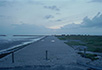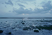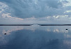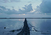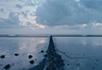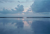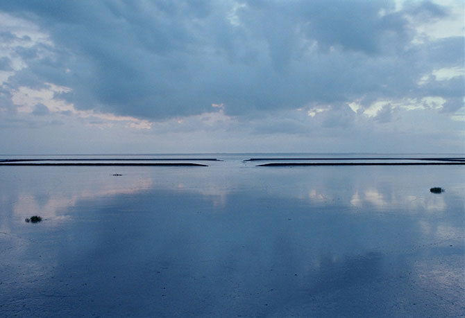 Die vor dem Horizont parallel lagernden oder zum Mittelpunkt zulaufenden Wellenbrecher verweisen in ihrer augenscheinlichen Geradlinigkeit auf den gestaltenden Eingriff des Menschen in die Natur, dem sich nur die lebendigen Wolkenformationen entziehen, die ihre amorphen Spiegelbilder auf die glatte Wasseroberfläche werfen.